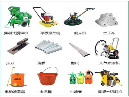 對各種施工機具做全面檢查,經(jīng)調(diào)試證明處于性能良好狀態(tài),機械數(shù)量足夠,施工能力配套,重要機械宜有備用設備。如:攪拌機、混凝土滾平機、運輸車、鏟車、手推車、路面切割機、平鐵锨、耙子、墩錘、手錘、鋁合金杠尺、3m直尺、水準儀、經(jīng)緯儀、鋼尺、橡皮錘、小線等。